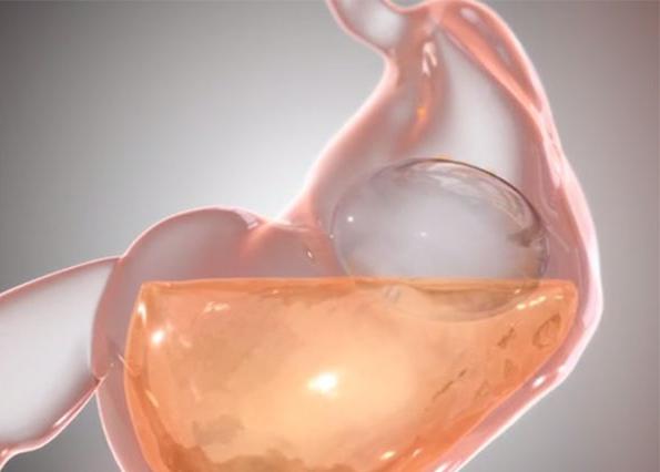Желудочный баллон - это силиконовая "емкость", объемом 500 мл, заполняемая водой. Желудочный баллон помещается в желудок, заполняя собой часть желудка. Внутрежелудочный баллон устанавливается во время гастроскопии в сдутой форме. В желудке баллон наполняют жидкостью. После установки баллона человек не может съесть пищи столько, сколько он ел раньше. Количество потребляемых калорий сокращается, человек худеет.