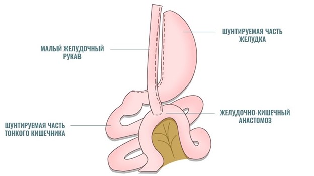 Малая часть формируется в ходе операции в виде трубки, и после операции будет играть роль желудка – «малый желудок». Большая часть желудка отключается от прохождения пищи, но не удаляется (как при рукавной гастропластике), а остается на своем месте.